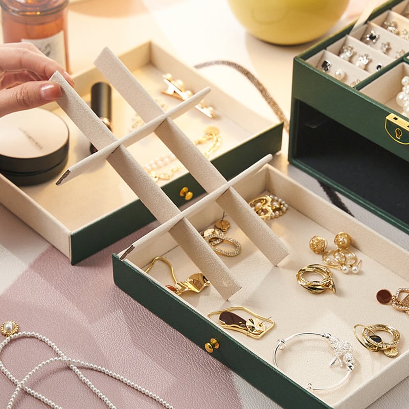 ・細かい仕切りで区切られているのでアクセサリーを分けて収納できます。