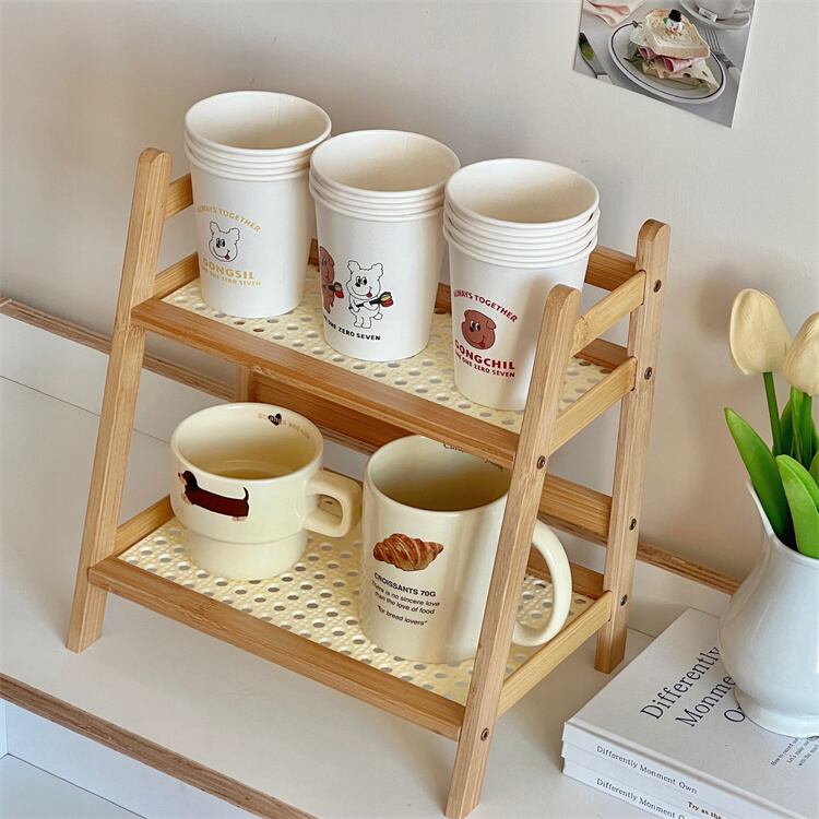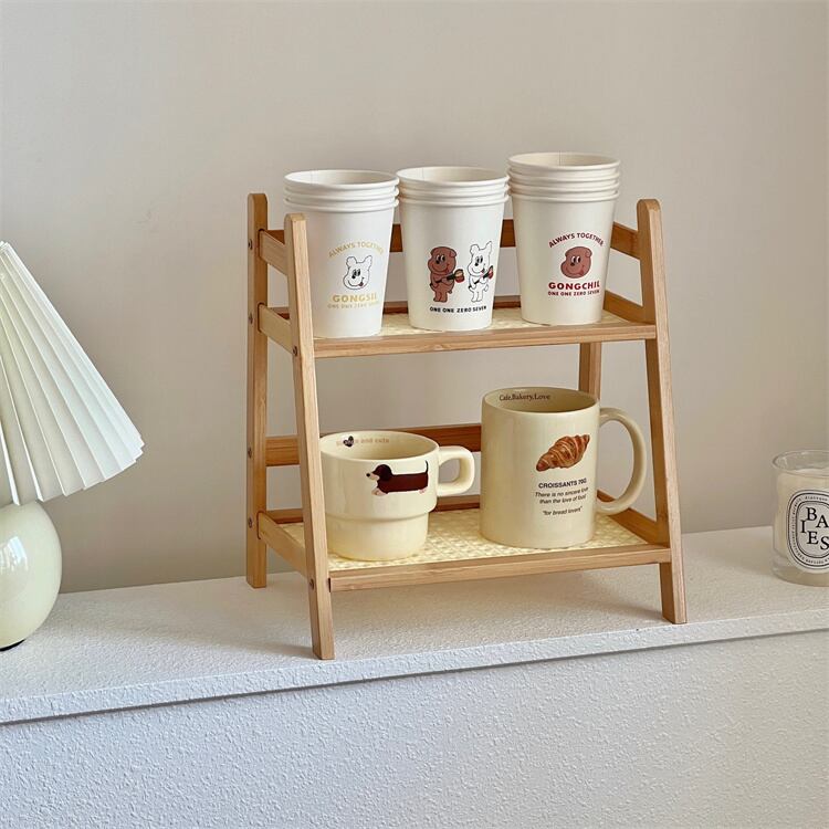 ・この『籐編 二重棚』は、二重構造で豊富な収納スペースを提供し、カップやお皿をおしゃれにディスプレイしながら整理整頓が簡単にできます!
