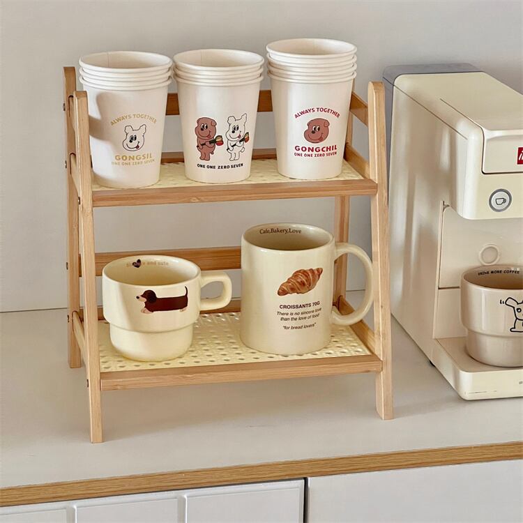 **おしゃれなキッチン整理棚! 籐編 二重棚 カップ棚 デザインセンス カジュアル!機能性と美しさが融合した収納アイテム!**