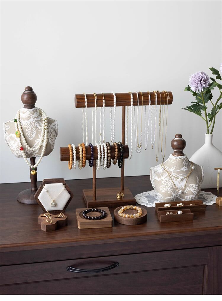 **アクセサリーをおしゃれに演出! トルソー型ショート 胡桃 実木 陳列アクセサリー棚 ショーウインドー飾り アクセサリー陳列棚!あなたの大切なアイテムを魅力的にディスプレイするアイテム!**
