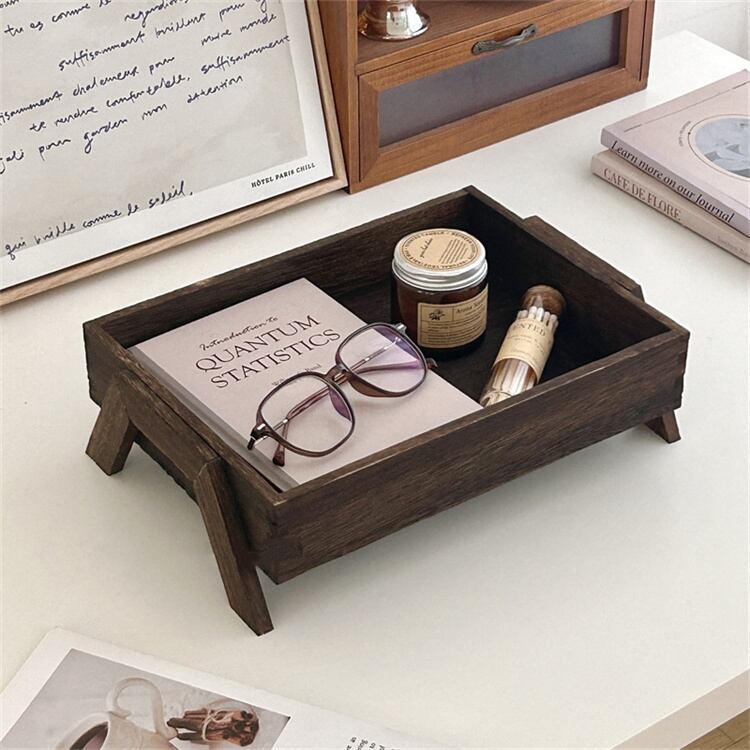 **自然の温もりを感じる天然木製の化粧品収納トレイ!デスク周りの小物をスッキリ整理して、あなたの生活空間をより快適にする理想的なアイテムです!**