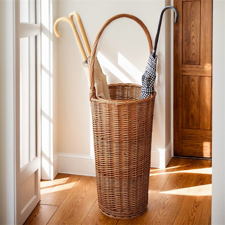 多機能収納バスケット・衣類収納・玄関収納かご・籐傘立て・モップ収納・巻物書画整理ケース
