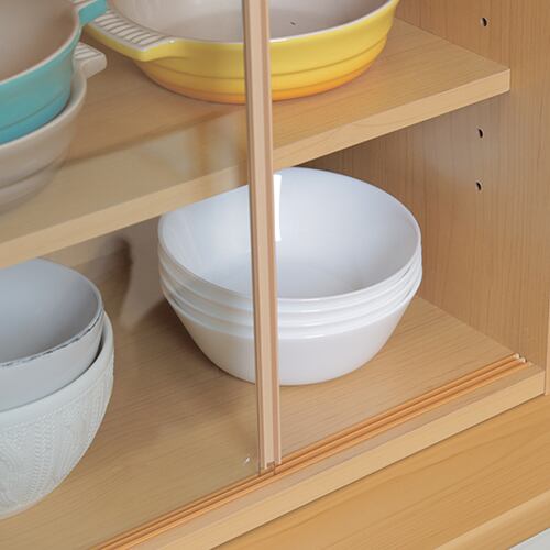 ・透明なガラス扉により、中身が見えることで、いつでもお気に入りの食器を手に取りやすく、キッチンをスタイリッシュに演出します!