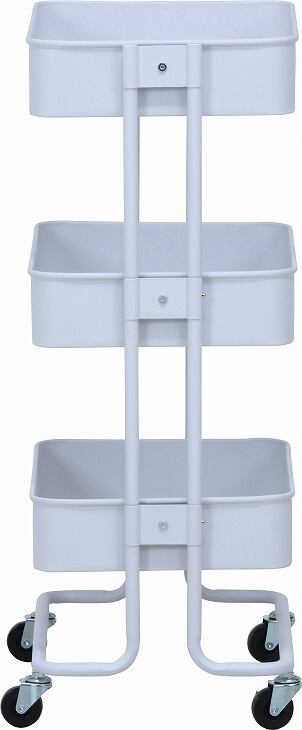 このキッチンワゴンは、シンプルで機能的な3段バスケットのデザインが魅力の収納アイテムです!