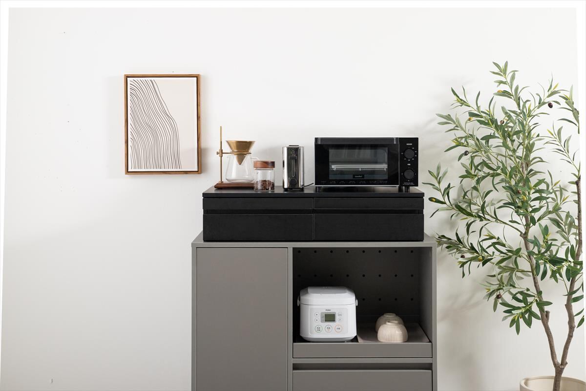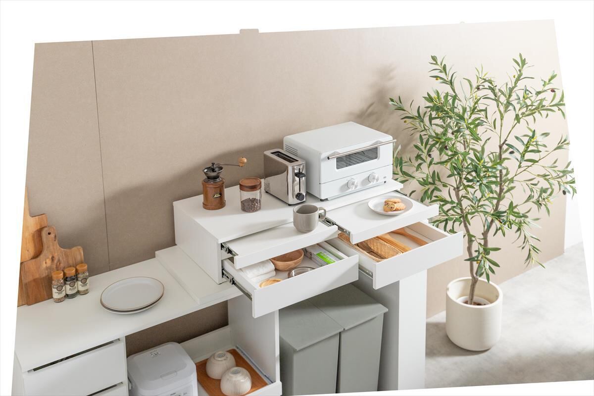 【幅80cm】Cammy 引き出し付レンジ下スライドトレー