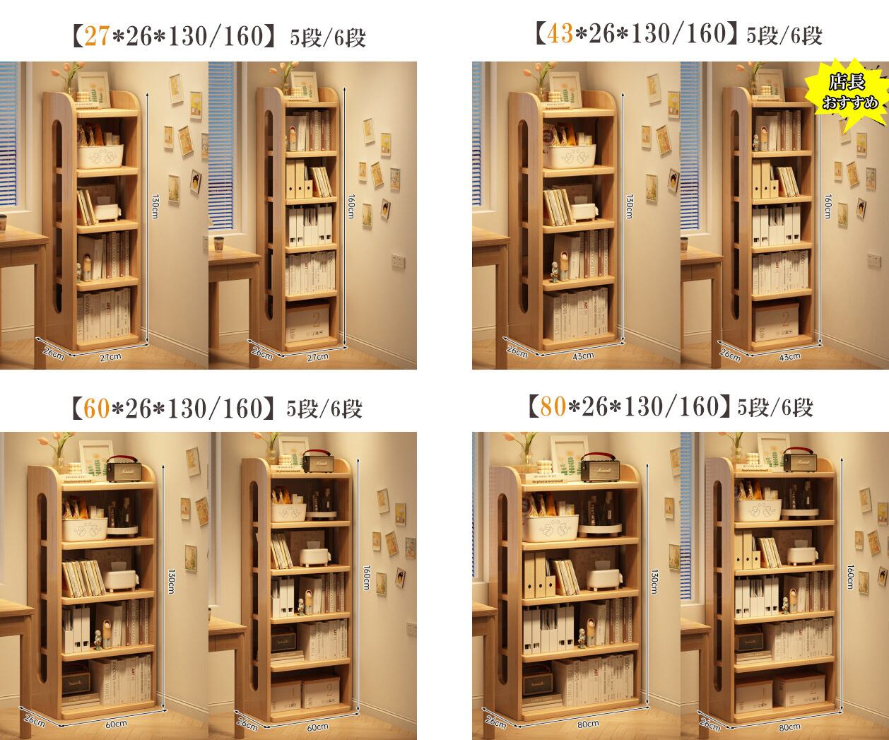 【6段/27*26*160・5段/60*26*130】本棚 和風クロゼット シンプル モダン 無垢材 収納 学生 省スペース 高級リビング収納