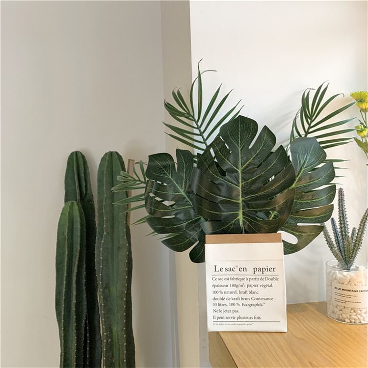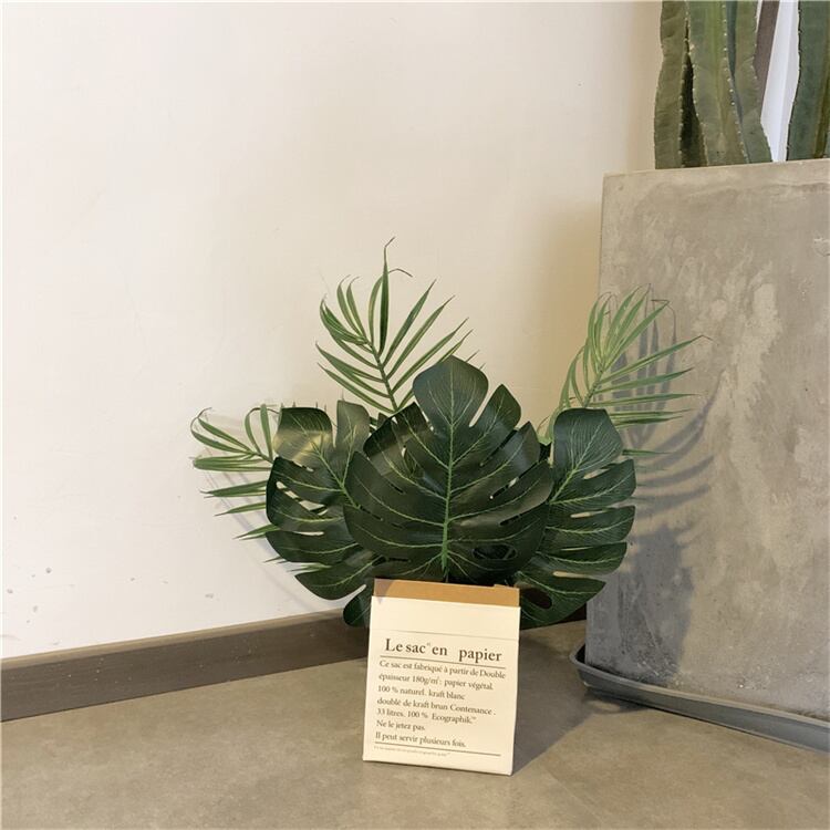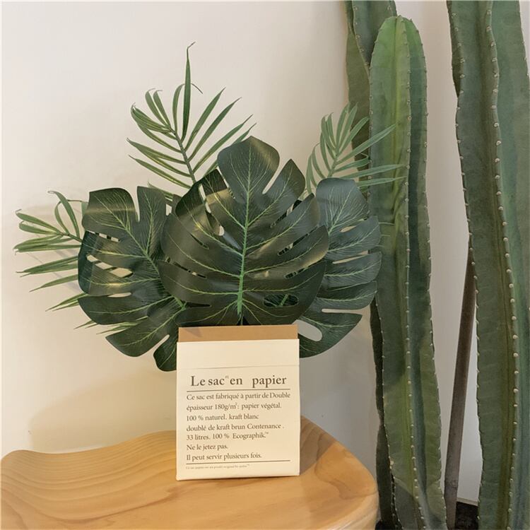 INSスタイル 緑植 青葉 牛革紙袋 紙袋 置物 ドライフラワーアート 木の葉 シミュレーション 亀の背葉