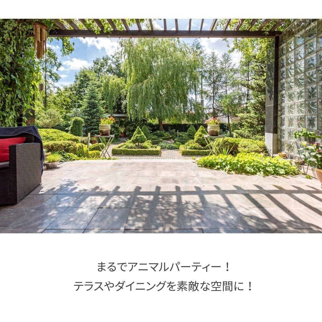 また、店舗のクリスマス仕様やお部屋でのパーティー、撮影にも便利なアイテムです。大きな会場やテナント、ショッピングモールでアニマルパーティー!にぎやかな雰囲気になります