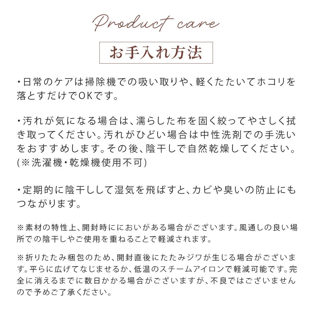 ・日常のケアは掃除機での吸い取りや、軽くたたいてホコリを落とすだけでOKです。