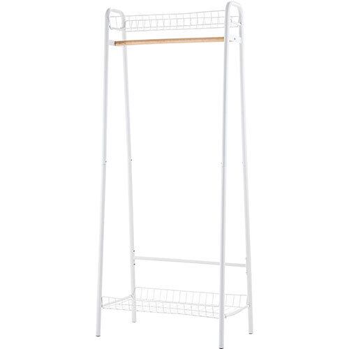 メッシュ棚が上下2段についた、収納性抜群のハンガーラック。ポール部分には天然木を使用し、ショップディスプレイのようにオシャレに洋服を収納できます。
