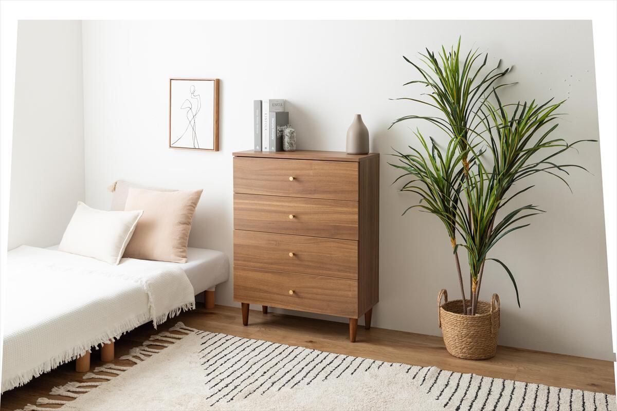 木の温かみを感じるリアルな木目調とゴールドのあしらいが目を惹く『Lucas(リュカ)』シリーズのチェスト