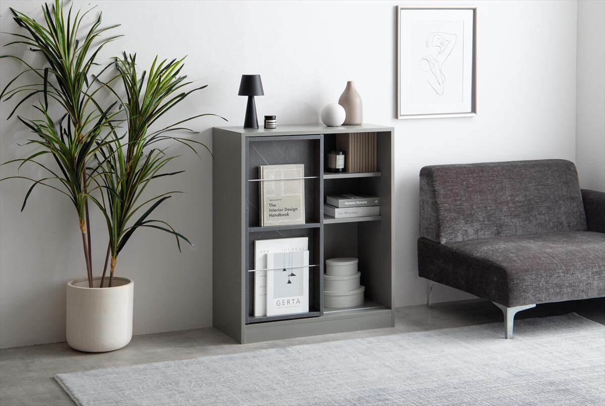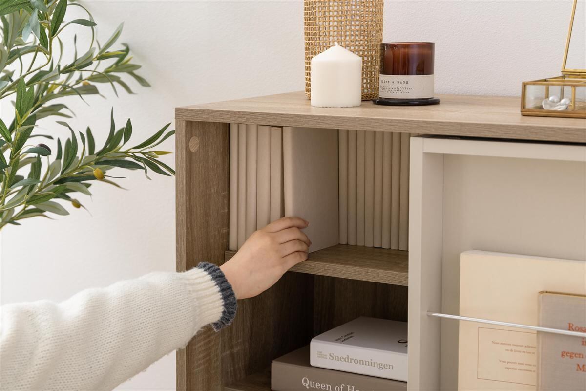 左右に動かすスライド棚で「隠す」と「見せる」が両立できる『Mysa(ミーサ)』スライド収納付き本棚ラック
