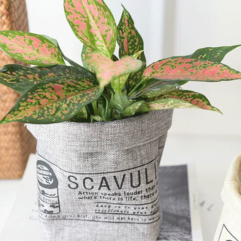 【2セット】リネン調 植木鉢 プランター 多肉ポット 花瓶 花台 インテリア置物 フラワーポット 布製 観葉植物カバー
